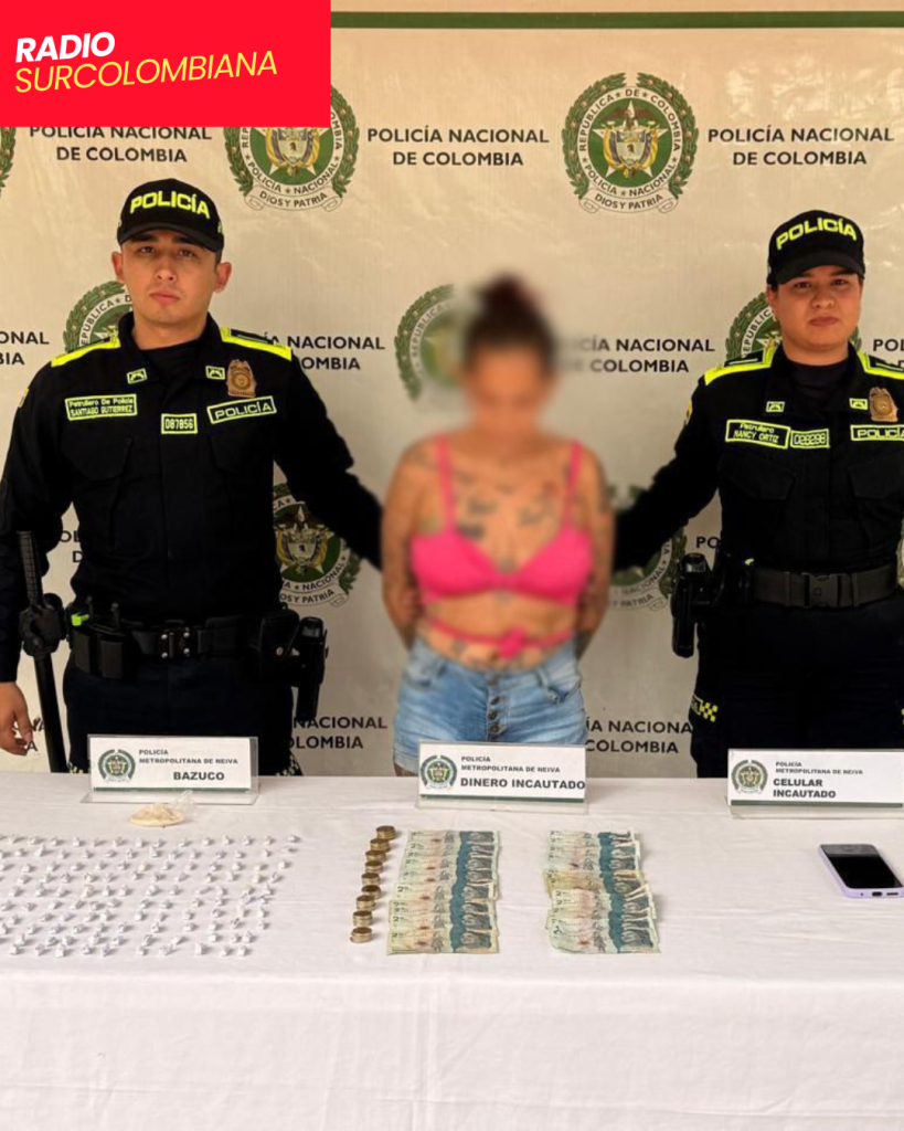 En medio de un operativo adelantado por unidades de la Policía Nacional de Colombia, fue capturada en flagrancia una mujer conocida con el alias de “Mona”, señalada de presuntamente dedicarse a la comercialización de estupefacientes en la ciudad de Neiva.