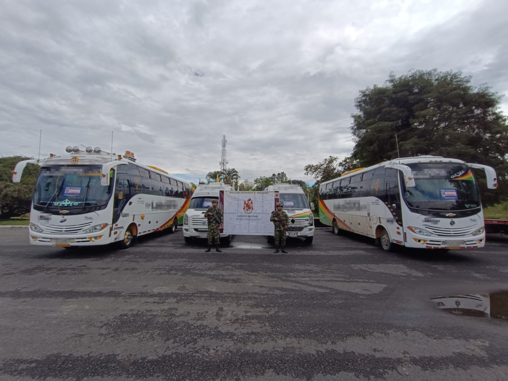 Se trata de tres viviendas ubicadas en el municipio de Garzón, en el centro del Huila, así como de dos autobuses y dos microbuses que estaban siendo utilizados para el transporte público de pasajeros en el municipio de Pitalito.