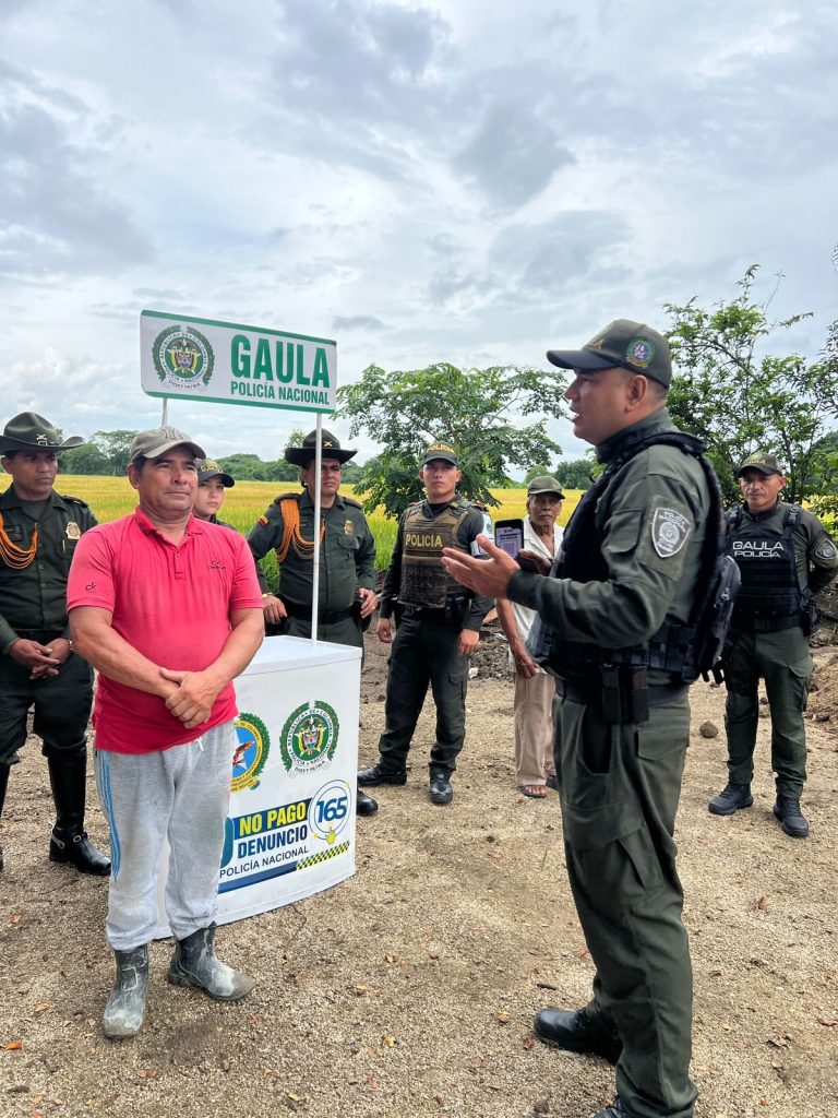 En el municipio de Campoalegre, el GAULA Huila, en coordinación con los grupos de Carabineros (GRUCA), Infancia y Adolescencia (GINAD) y Policía Comunitaria (POLCO) del Departamento de Policía Huila, adelantó una jornada de prevención del secuestro y la extorsión dirigida al gremio agricultor, especialmente a los arroceros de la región.