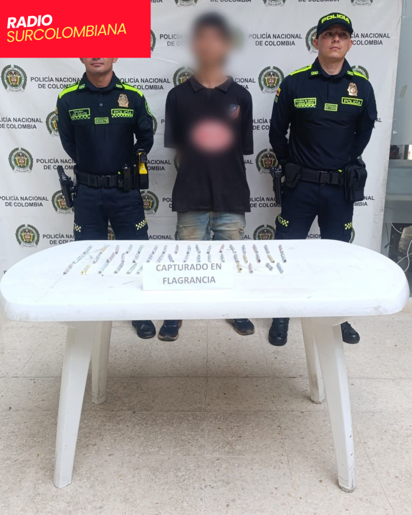 En el marco de las acciones de vigilancia y control adelantadas por la Policía Nacional de Colombia en el municipio de Aipe, fue capturado un hombre de 22 años en un sector aledaño al barrio Pradera de Lourdes. El procedimiento se desarrolló en una zona boscosa del sector, como parte de los planes preventivos orientados a contrarrestar el tráfico de sustancias ilícitas en espacios residenciales y de alta circulación comunitaria.