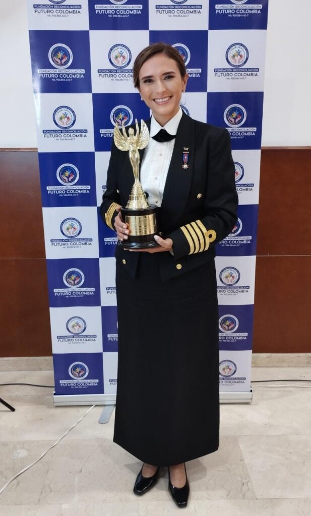 Finalmente, comenta que ve retribuido día a día el esfuerzo realizado, en el desarrollo como profesional de la Armada Nacional, y todo el apoyo y la dedicación de las personas que la rodean. La Capitán de Navío ha recibido condecoraciones entre las que se destaca: Medalla Servicios Distinguidos a la Armada, Orden del Mérito Naval “Antonio Nariño”, Orden del Mérito Naval “Almirante Padilla”, Medalla Militar Ministerio de Defensa Nacional, Medalla Servicios Distinguidos a la Infantería de Marina, Medalla “Fe en la Causa” de la Armada Nacional, entre otras, contando con el Distintivo de Profesor Militar y otros.