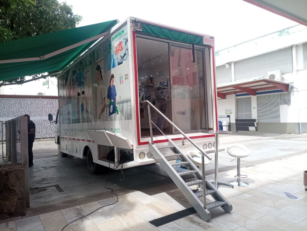Para los días de ayer y hoy en el Hospital, los profesionales de enfermería y estudiantes, contaron con varios stand, en el que inicialmente se encontraba el show truck, el cual es la primera vez que está en Neiva y en el que su propósito era el de enseñar o brindar acompañamiento en el conocimiento de la forma en la que se usaban los catéteres.