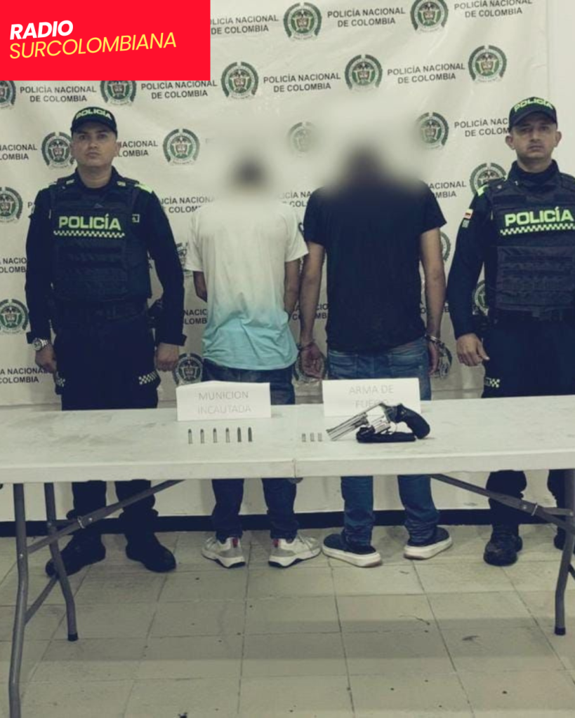 En desarrollo de labores de prevención y control en el municipio de Rivera, la Policía Nacional reportó la captura de dos personas y la aprehensión de un menor de edad en flagrancia, por su presunta vinculación al delito de fabricación, tráfico, porte o tenencia de armas de fuego, accesorios, partes o municiones. Las acciones se dieron en el marco de los operativos permanentes que adelantan los cuadrantes para fortalecer la seguridad y la convivencia ciudadana.