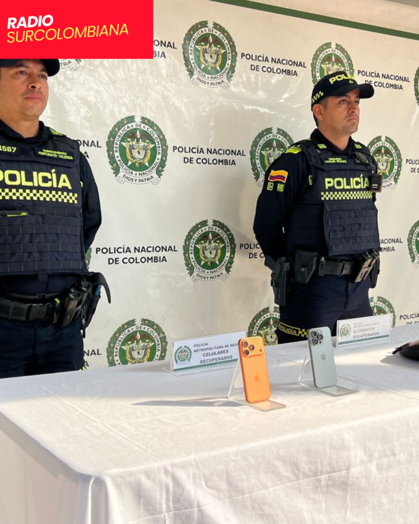 Dos teléfonos móviles de alta gama y un bolso con pertenencias personales fueron recuperados por uniformados de la Policía Nacional de Colombia tras un hurto registrado en una vivienda del barrio Cándido, en Neiva.