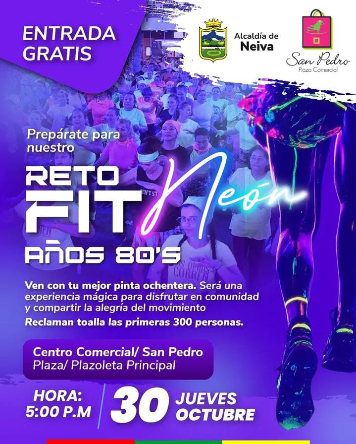 Cuando la música estridente de los sintetizadores, las luces de colores y la estética de los 80 regresan para quedarse, no lo hacen sólo como nostalgia: lo hacen como una experiencia energética que une generaciones. En el Huila se avecina precisamente eso: el evento Reto Fit Neón Años 80’s, una jornada de ejercicio musicalizado, luces neón y mucha motivación, que convoca a la comunidad a reconectarse con el cuerpo, el ritmo y la diversión en un ambiente distinto al habitual.